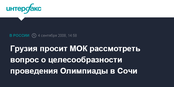 Как сообщили "Интерфаксу" в HОК Грузии, в письме, в частности, говорится, что в связи с последними событиями в Грузии, "той агрессией, которую осуществила Российская Федерация против Грузии, Международному олимпийскому комитету, наверное, стоило бы еще раз рассмотреть вопрос возможности проведения зимних Олимпийских игр в Сочи".