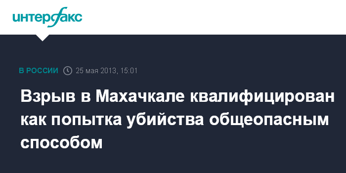 Махачкала. 25 мая. INTERFAX.RU - Следственными органами возбуждено уголовное дело по четырем статьям УК РФ по факту взрыва на улице Гамзатова в Махачкале, сообщили "Интерфаксу" в Следственном управлении СКР по Дагестану.