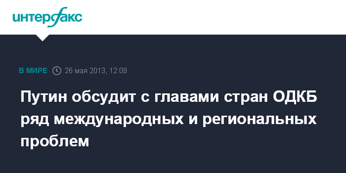 Путин обсудит с главами стран ОДКБ ряд международных и региональных проблем