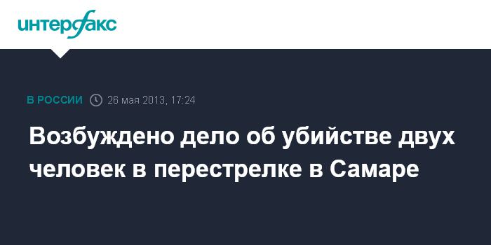 Москва. 26 мая. INTERFAX.RU - Уголовное дело возбуждено по факту гибели двух участников перестрелки с применением травматического оружия в Самаре, сообщает в воскресенье сайт Следственного комитета РФ.