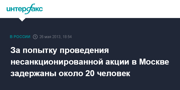 Москва. 26 мая. INTERFAX.RU - Два десятка человек доставлены в полицию за попытку проведения несанкционированной акции в центре столицы, сообщили "Интерфаксу" в пресс-службе ГУ МВД России по Москве. "В воскресенье вечером в отделы полиции были доставлены около 20 человек за попытку проведения мероприятия, не согласованного с исполнительной властью города, в центральной части столицы", - сказал сотрудник пресс-службы. Он добавил, что решается вопрос о привлечении доставленных к административной ответственности.