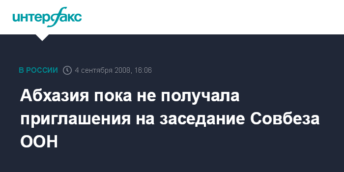 Сухуми. 4 сентября. INTERFAX.RU - Абхазия пока не получала официального приглашения на заседание Совета Безопасности ООН, сообщил глава МИД республики Сергей Шамба.