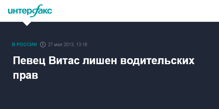 Москва. 27 мая. INTERFAX.RU - Мировой судебный участок 414 Останкинского района лишил певца Витаса (Виталия Грачева) водительского удостоверения сроком на 1,5 года за отказ пройти освидетельствование на состояние алкогольного опьянения после ДТП.