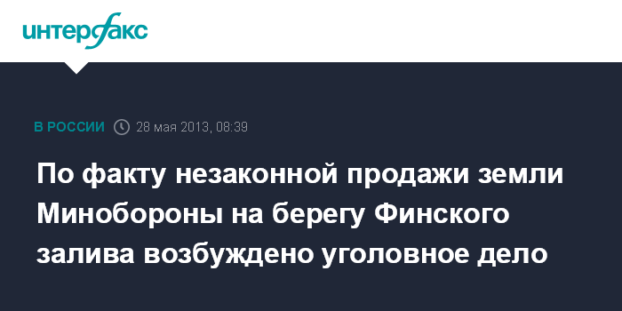 Москва. 28 мая. INTERFAX.RU - Уголовное дело по ст. 286 УК РФ ("Превышение должностных полномочий") возбуждено в связи с продажей по заниженной в два раза цене участка в 11 тыс. кв. м и строений Минобороны на берегу Финского залива, сообщает газета "Известия" во вторник.