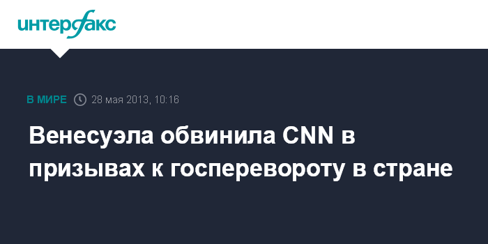 Каракас. 28 мая. INTERFAX.RU - Президент Венесуэлы Николас Мадуро обвинил руководство американского телеканала CNN в попытке дестабилизировать ситуацию в стране и в подстрекательстве к проведению государственного переворота.