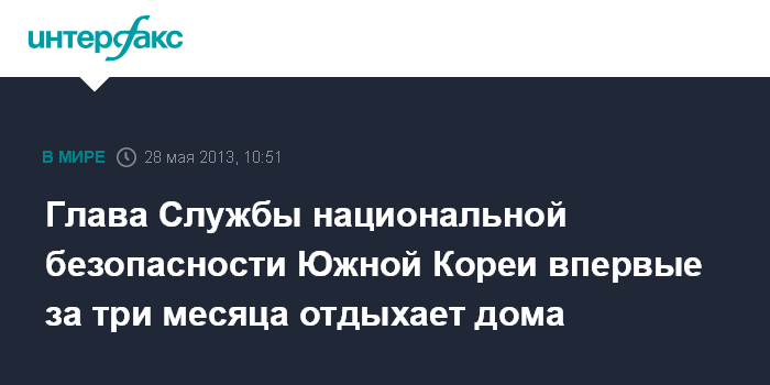 Сеул. 28 мая. INTERFAX.RU - Глава Службы национальной безопасности Южной Кореи Ким Чан Су впервые за три месяца покинул место работы и отправился отдыхать домой, сообщили во вторник южнокорейские СМИ.