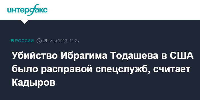 Грозный. 28 мая. INTERFAX.RU - Глава Чечни Рамзан Кадыров считает, что агенты ФБР учинили расправу над выходцем из республики Ибрагимом Тодашевым.