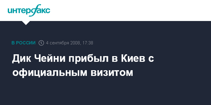 Киев. 4 сентября. INTERFAX.RU - Вице-президент США Дик Чейни прибыл с официальным визитом в Киев, передает корреспондент агентства "Интерфакс-Украина".