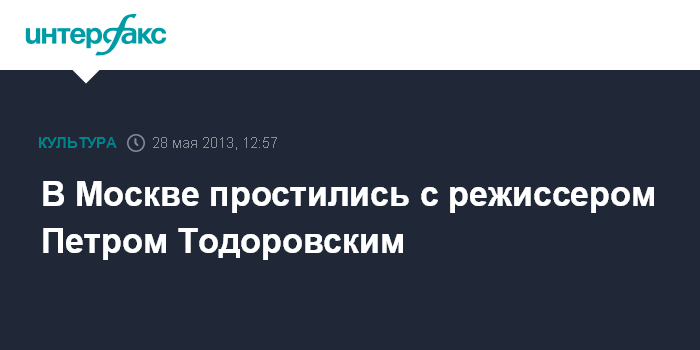 Москва. 28 мая. INTERFAX.RU - В Москве прошло прощание с кинорежиссером Петром Тодоровским, передает корреспондент "Интерфакса".