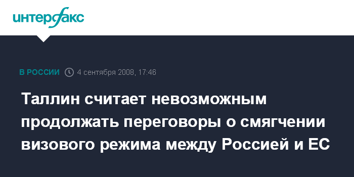 Таллин. 4 сентября. INTERFAX.RU - Эстония выступает против продолжения переговоров между Евросоюзом и Россией о дальнейшем смягчении визового режима.