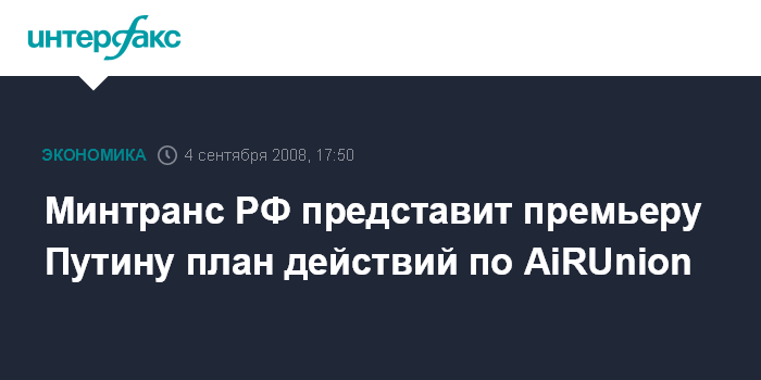 Москва. 4 сентября. INTERFAX.RU - Министр транспорта РФ Игорь Левитин сообщил о выработке плана действий, касающегося авиационного альянса AiRUnion.