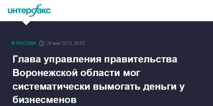 Глава управления правительства Воронежской области мог систематически вымогать деньги у бизнесменов
