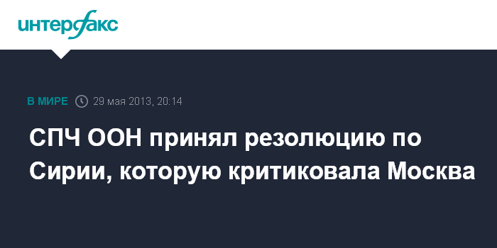 Женева. 29 мая. INTERFAX.RU - Совет ООН по правам человека (СПЧ) в среду принял раскритикованную Россией резолюцию, осуждающую участие иностранных граждан в боевых действиях в Сирии.