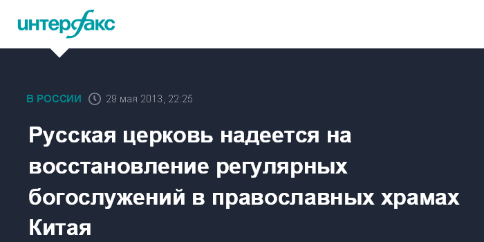 Русская церковь надеется на восстановление регулярных богослужений в православных храмах Китая