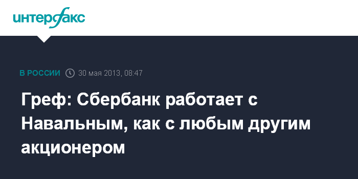 Греф: Сбербанк работает с Навальным, как с любым другим акционером
