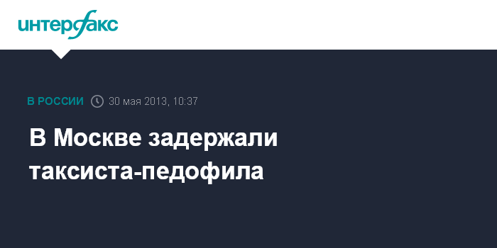 Москва. 30 мая. ИНТЕРФАКС - Таксист-педофил, выбиравший своих жертв через Интернет, задержан в Москве, сообщили в МВД России.