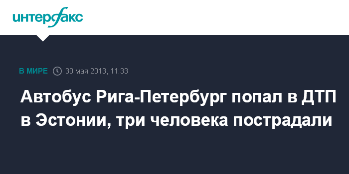 Таллин. 30 мая. INTERFAX.RU - В Йыгеваском уезде Эстонии в ночь на четверг попал в аварию автобус, ехавший из Риги в Санкт-Петербург, есть пострадавшие.