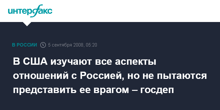 "В Вашингтоне и в госдепартаменте, а так же в других органах правительства США не предпринимается попыток изобразить Россию врагом", - заявил представитель госдепартамента.