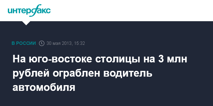 Москва. 30 мая. INTERFAX.RU - Грабеж совершен на юго-востоке столицы, могла быть похищена крупная сумма денег, сообщили "Интерфаксу" в пресс-службе ГУ МВД России по Москве.