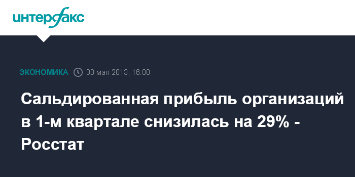 Сальдированная прибыль организаций в 1-м квартале снизилась на 29% - Росстат
