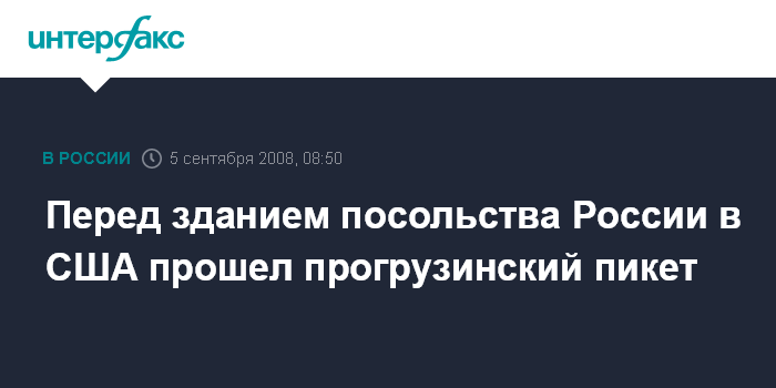 Москва. 5 сентября. INTERFAX.RU - Небольшой, но шумный пикет был организован перед зданием посольства РФ в США.