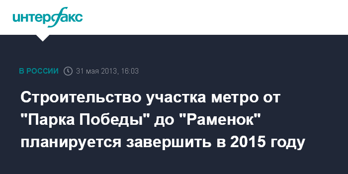 Строительство участка метро от "Парка Победы" до "Раменок" планируется завершить в 2015 году