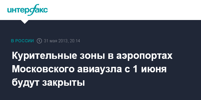 Москва. 31 мая. INTERFAX.RU - Курительные зоны в аэропортах Московского авиаузла с 1 июня будут закрыты.