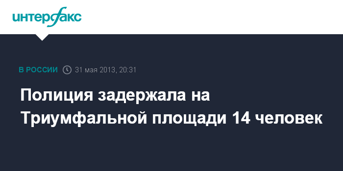 Москва. 31 мая. INTERFAX.RU - В отделы полиции доставлены 14 человек с Триумфальной площади, сообщили "Интерфаксу" в пресс-службе ГУ МВД России по Москве.