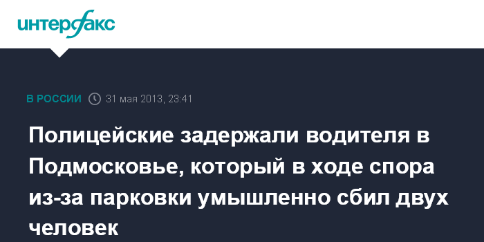 Полицейские задержали водителя в Подмосковье, который в ходе спора из-за парковки умышленно сбил двух человек