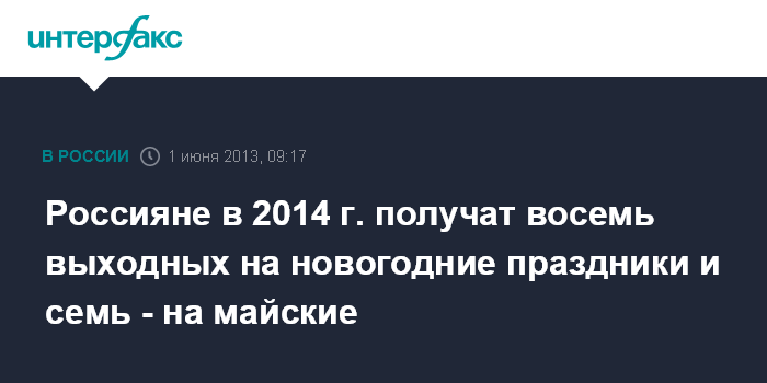 Россияне в 2014 г. получат восемь выходных на новогодние праздники и семь - на майские