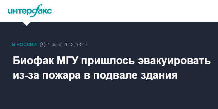 Москва. 1 июня. INTERFAX.RU - Около 200 человек эвакуированы из корпуса факультета биологии МГУ в связи с пожаром в подвальном помещении, сообщили "Интерфаксу" в ГУ МЧС России по Москве. "Пожарные прибыли по адресу: Воробьевы горы, 1 строение 12, где горит трансформаторная подстанция в подвале биологического факультета МГУ", - сказал представитель управления.