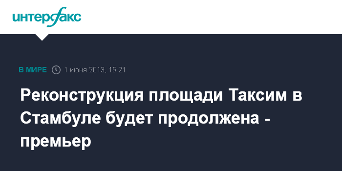 Стамбул. 1 июня. INTERFAX.RU - Реконструкция площади Таксим в Стамбуле будет продолжена, заявил в субботу глава правительства Турции Реджеп Эрдоган, комментируя ситуацию, складывающуюся вокруг этого проекта. "В рамках этого проекта мы намерены провести реконструкцию казармы, что вызвало гнев противников этой идеи", - сказал он, призвав активистов покинуть площадь и прилегающие районы.