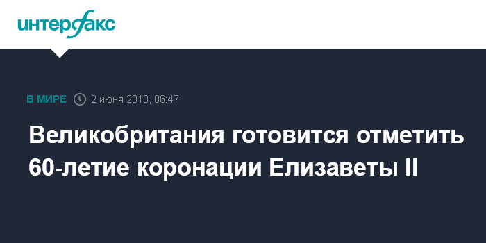 Лондон. 2 июня. ИНТЕРФАКС - Королева Великобритании Елизавета II отмечает в воскресенье 60-летнюю годовщину коронации, состоявшейся 2 июня 1953 года.