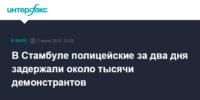 Лондон. 2 июня. INTERFAX.RU - Сотрудники полиции Турции за последние два дня задержали в Стамбуле более 900 участников акций протеста, сообщает в воскресенье BBC. В МВД страны пояснили, что некоторых задержанных уже отпустили, других же ждет суд.