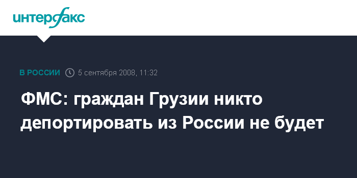 Москва. 5 сентября. INTERFAX.RU - Глава Федеральной миграционной службы РФ Константин Ромодановский категорически отверг возможность выдворения из России граждан Грузии.