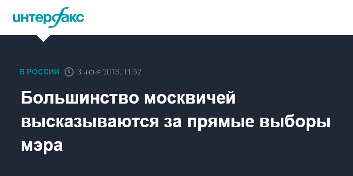 Москва. 3 июня. INTERFAX.RU - Более половины жителей Москвы поддерживают проведение в столице прямых выборов мэра, следует из опроса научно-исследовательского института социальных систем при МГУ им. М.В.Ломоносова.
