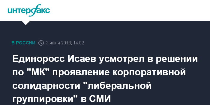 Единоросс Исаев усмотрел в решении по "МК" проявление корпоративной солидарности "либеральной группировки" в СМИ