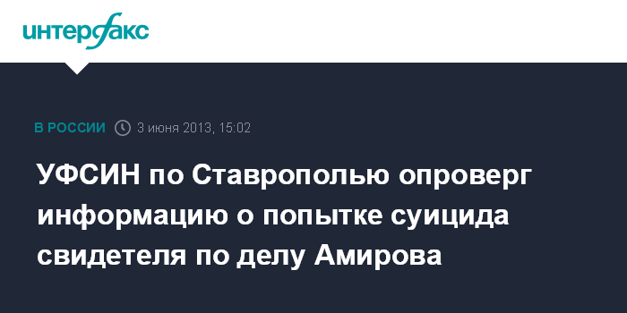 УФСИН по Ставрополью опроверг информацию о попытке суицида свидетеля по делу Амирова