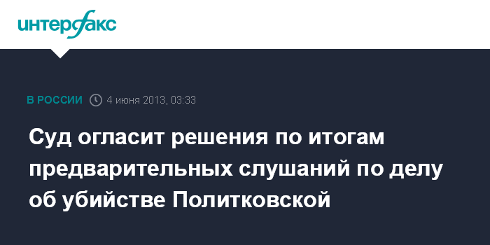 Москва. 4 июня. ИНТЕРФАКС - Мосгорсуд в открытом режиме огласит решения по итогам предварительных слушаний дела об убийстве обозревателя "Новой газеты" Анны Политковской.