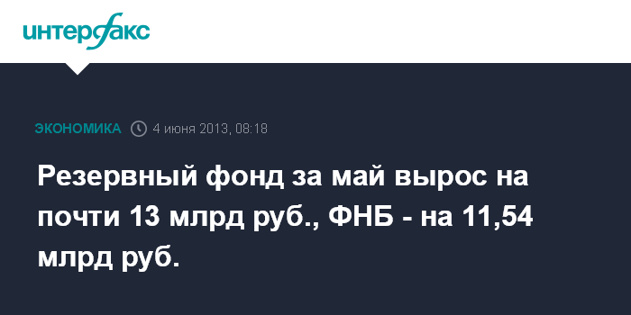 За прошедший месяц ФНБ увеличился на 11,54 млрд руб. На 1 мая 2013 года он составлял составил 2 трлн 727,79 млрд руб.