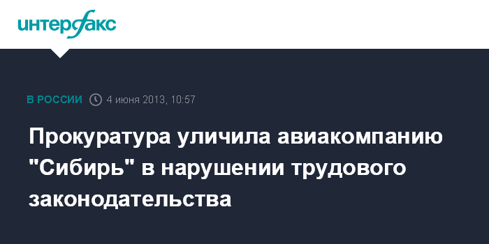 Прокуратура уличила авиакомпанию "Сибирь" в нарушении трудового законодательства