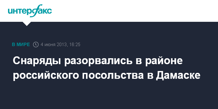 Дубай. 4 июня. INTERFAX.RU - Несколько взрывов прогремели во вторник в районе столицы Сирии Дамаска, где расположено российское посольство, сообщает межарабский телеканал Al Jazeera.