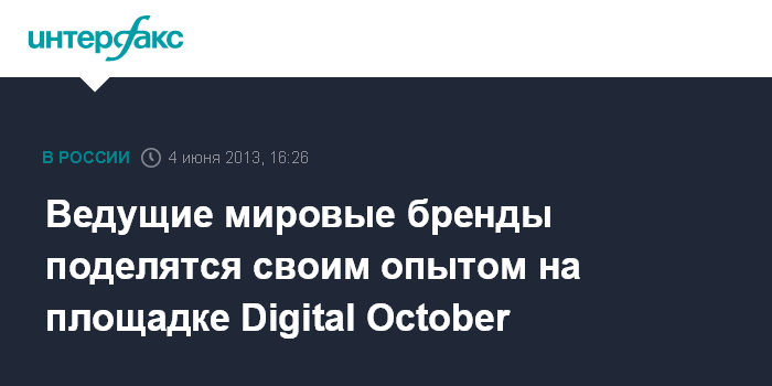 Москва. 4 июня. INTERFAX.RU – На московской площадке Digital October 5-6 июня состоится саммит Digital Branding, где будут представлены последние идеи, лучшие кейсы и стратегии построения брендов.