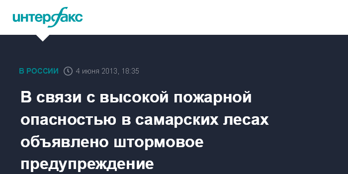 ГУ МЧС по Самарской области сообщает о штормовом предупреждении. "С 4 июня по 5 июня местами в области ожидается высокая пожарная опасность лесов. В десяти муниципальных районах области введен V класс пожарной опасности, в одном - IV класс", - говорится в сообщении поступившем от Гидрометцентра Самарской области.