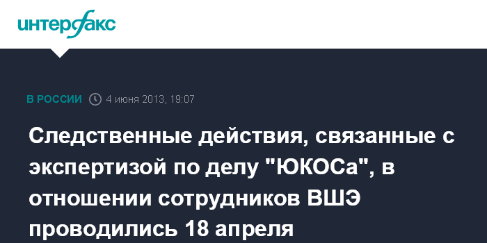 Следственные действия, связанные с экспертизой по делу "ЮКОСа", в отношении сотрудников ВШЭ проводились 18 апреля