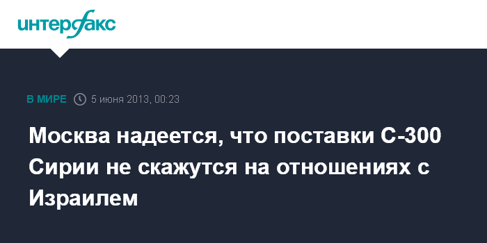 Москва надеется, что поставки С-300 Сирии не скажутся на отношениях с Израилем
