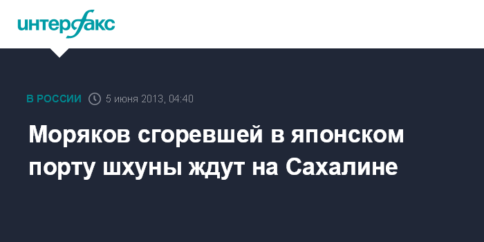 Южно-Сахалинск. 5 июня. ИНТЕРФАКС-ДАЛЬНИЙ ВОСТОК - Спасшиеся члены экипажа камбоджийской рыболовецкой шхуны "Тайган", сгоревшей 16 мая в японском порту Вакканай, в среду во второй половине дня прибудут на Сахалин, сообщила агентству "Интерфакс-Дальний Восток" атташе представительства МИД России в Южно-Сахалинске Юлия Лазовская.