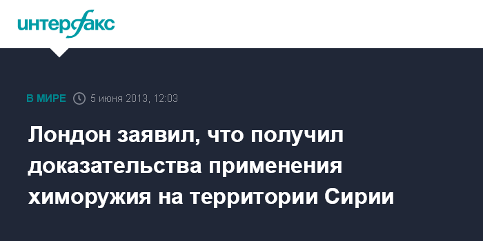 "Мы получили физиологические образцы из Сирии, которые были проверены в лаборатории в Англии. Образцы подтвердили факты применения газа зарина в Сирии ", - сообщил журналистам официальный представитель британского правительства.