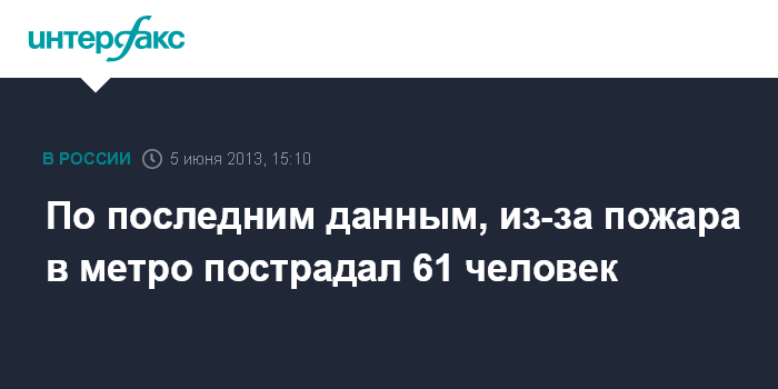 По последним данным, из-за пожара в метро пострадал 61 человек