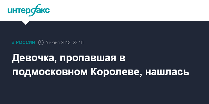 Девочка, пропавшая в подмосковном Королеве, нашлась
